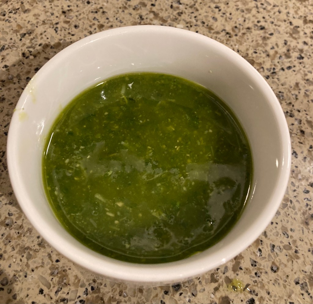 For a more detailed recipe, click here for an earlier post. Also, for a pesto made with fresh mint rather than basil, click here; for a hazelnut version, rather than pine nuts, click here.