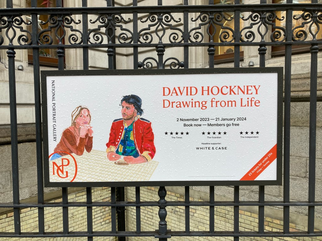 The boys went into London in the morning with their mother to visit a few London sights - including the famous toy shop, Hamley's. I was meeting them at the Coliseum at 1.45pm so Freddie could come to the matinee of the ballet with me. Rather spontaneously, as the sun was shining and I was in a kind of holiday mood, having decided not to start a new job waiting on my computer until the next day, I decided to head into London early myself and go to the David Hockney: Drawing from Life exhibition at the National Portrait Gallery. I was Member at the gallery for years but it's only fairly recently re-opened after a major renovation. So major, the main entrance was round the corner from the old and I found myself entering an entirely unfamiliar place, whereas once I'd spent a lot of time there and knew my way around well. Their cafe has always been so good, I've often gone in for a coffee or snack when in the area, without seeing an exhibition. Its location near Trafalgar Square and London's Theatreland makes it an ideal place to meet people or pop in for a drink.