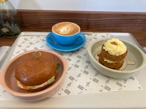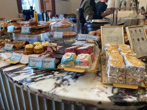 I decided to get a snack lunch in one of the gallery's cafes. Again, I had to re-orientate myself and as I followed signs for the cafe, found myself in a familiar part of the gallery, albeit the former shop had turned into one of the cafes. The food was still excellent and I had a very good brioche bun with smoked salmon, cream cheese, spinach and some gherkin. And I couldn't resist one of their little carrot cakes to go with my coffee!