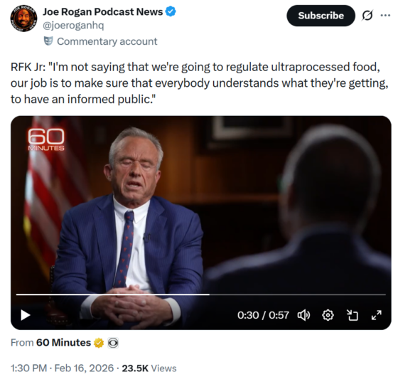Latest from Food Politics: 60 Minutes: RFK Jr on non-regulation of ultra-processed food