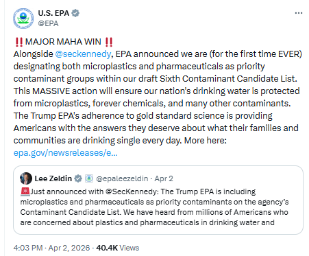 EPA, HHS Announce Historic Actions to Protect Americans from Microplastics and Safeguard Drinking Water [EPA] For the first time in the program’s history, EPA is including microplastics as a priority contaminant group in its draft Sixth Contaminant ...